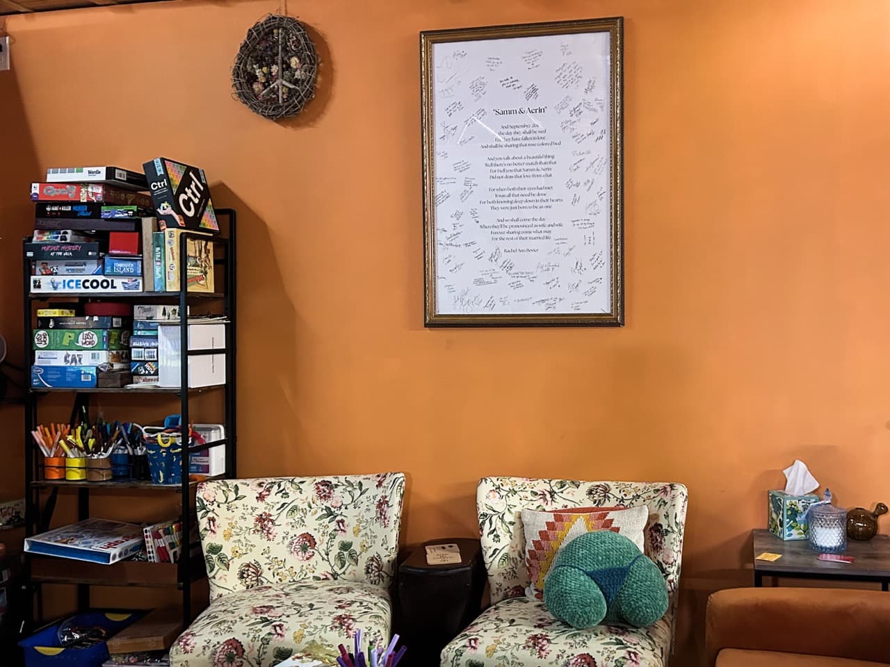 Being a “soft” space is at the center of the cafe’s philosophy. Aerin and Samm’s friend came up with the distinct name and logo, a drawing of an orchid.